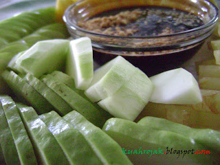 In this picture (clockwise) centerpiece kuah rojak, buah pelam/mangga, epal hijau, epal merah, belimbing, dan sengkuang. Lebih sedap jika ada jambu batu, jambu air, nenas, betik muda dan kedondong/buah amra or any fruits of your choice.